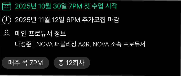※ 데모곡 피칭을 위한 클래스이므로 어느정도 데모곡 제작 경험 있는 분들께 적합하며,