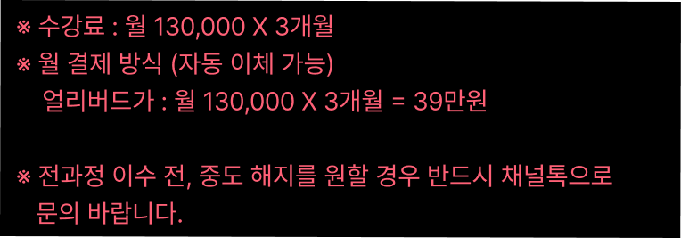 ※ 클래스 관련 문의 사항은 홈페이지 우측 하단 채널톡을 통해서 상담 가능합니다.