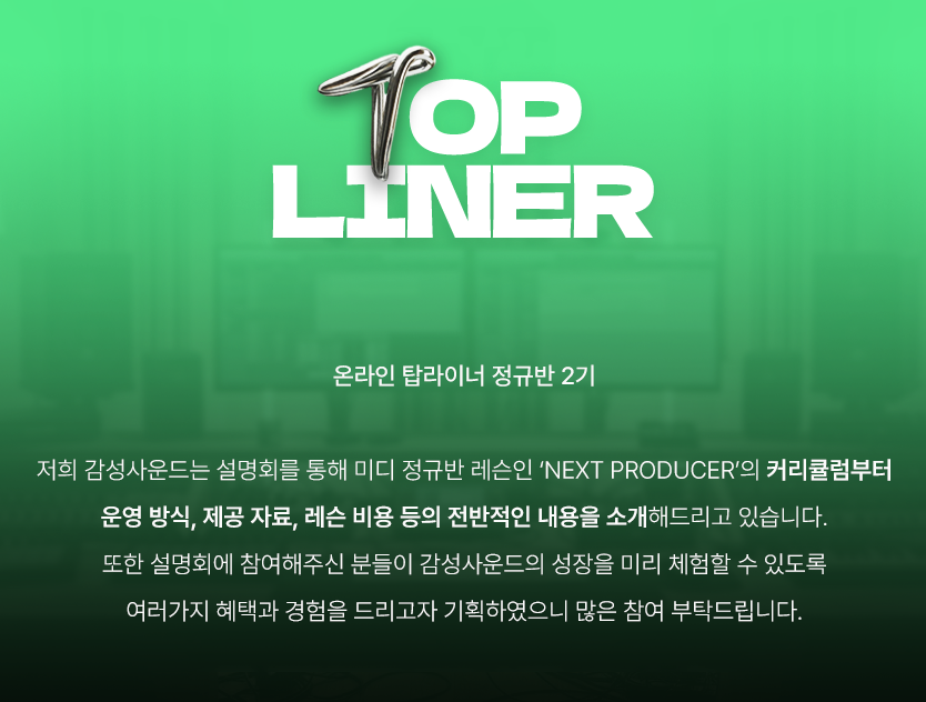사진을 클릭해서 '탑라이너 정규 클래스 2기' 더 알아보기