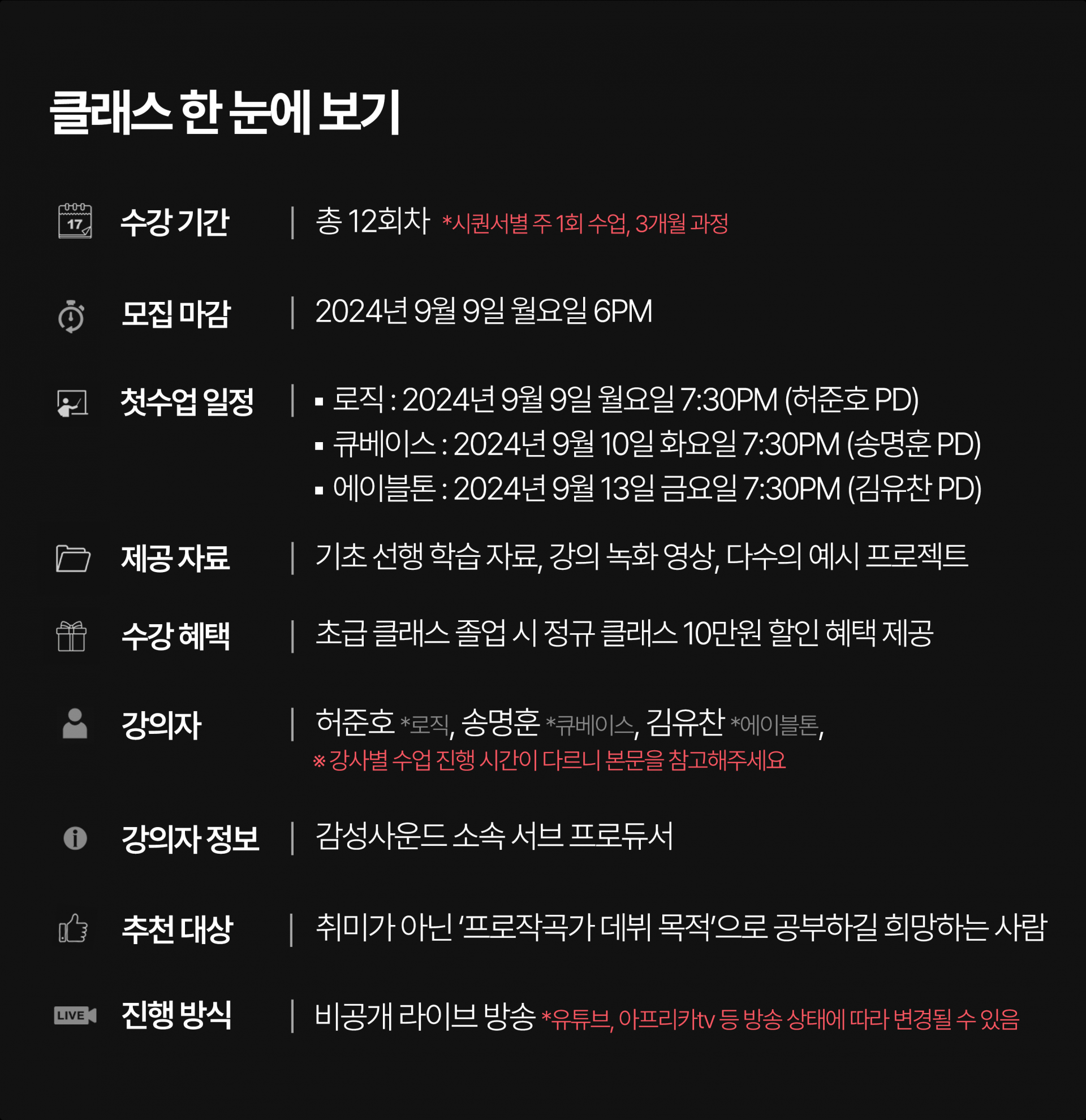| 로직 | 허준호 PD | 2024년 9월 9일 월요일 7:30PM | 모집 마감 2024년 9월 9일 월요일 6PM |
