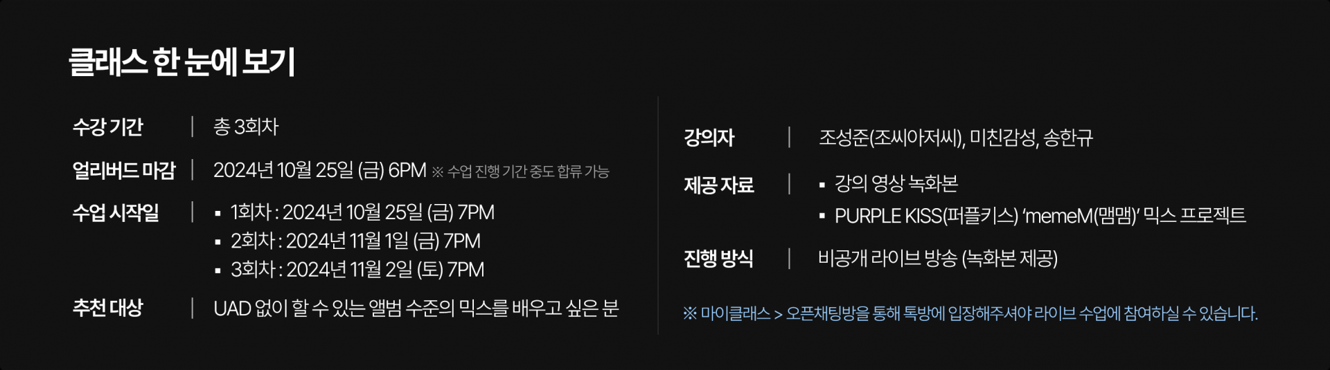 | 내선번호 | 1 - 클래스 문의 2 - 결제 관련 문의 3 - 자료 발송 및 기술지원팀 연결 4 - 마케팅 관련 문의 5 - 상담원 연결 - 그 외 문의는 감성사운드 카카오채널 이용 |